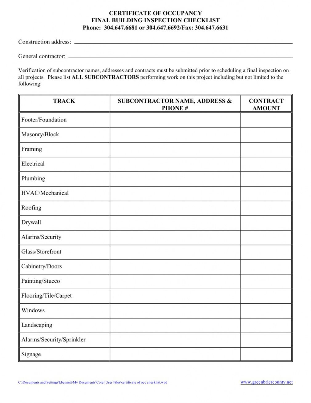 Printable Residential Building N Checklist Template Com…